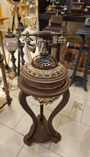 تلفن ایستاده _تلفن کنار سالنی نگین قهوه ای _ تلفن سلطنتی و کلاسیک _ تلفن