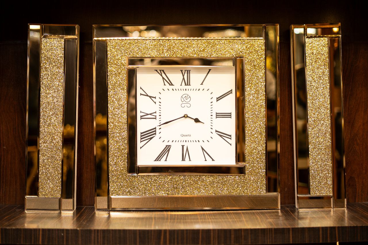 ساعت دیواری آینه ای نگین دار شاین رنگ طلایی
