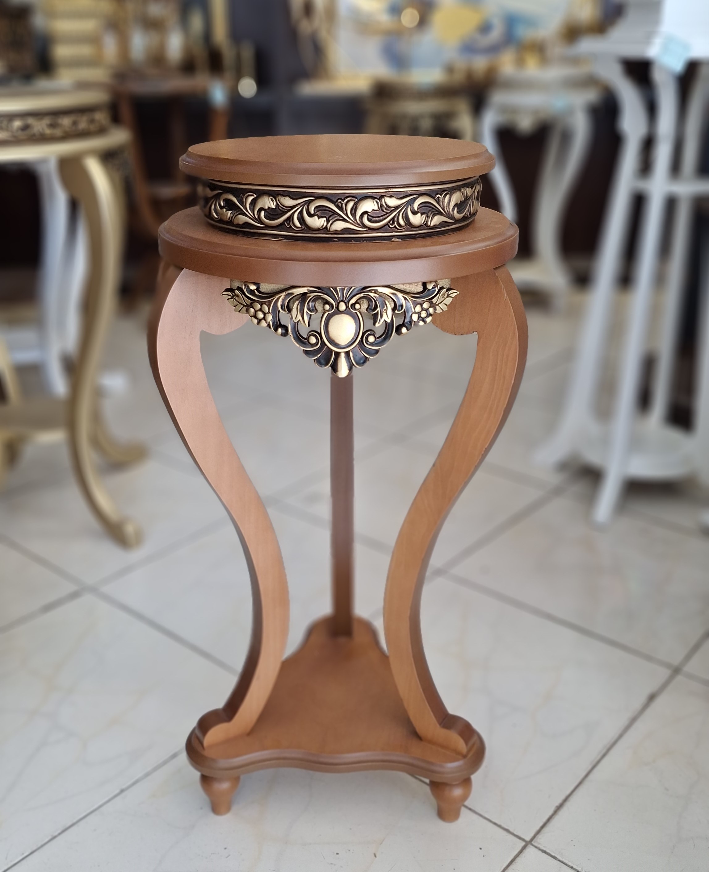 میز تلفن گرد چوبی قهوه ای روشنناموجود