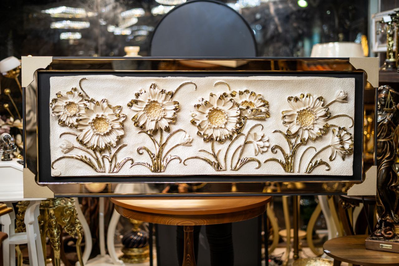 تابلو آینه ای طرح گل رزین رنگ برنز 140 در 55