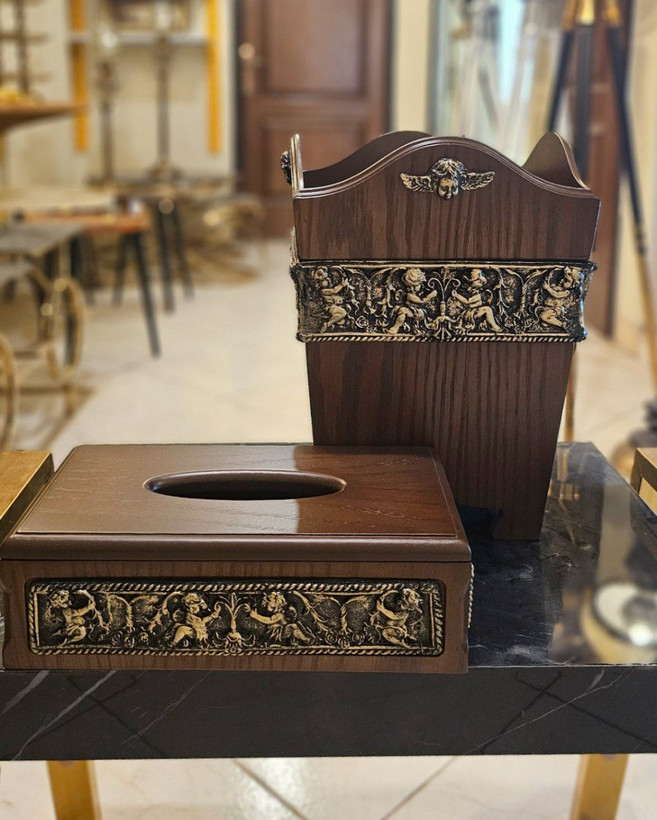 سطل و جا دستمال کاغذی چوبی / برند والتر کد M310 / سطل و جا دستمال
