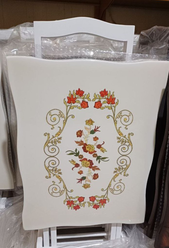 میز عسلی تاشو سفید طرحدار _ میز عسلی تاشو پولیشی سفید طرحدار طرح گل _ میز جلو مبلی _ میز سفید