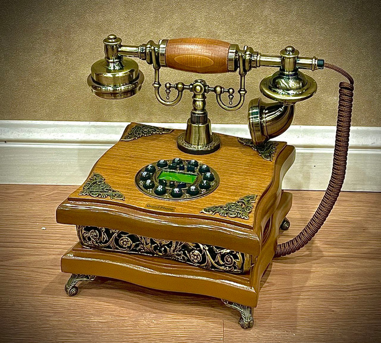 تلفن رومیزی سلطنتی و کلاسیک قهوه ای
