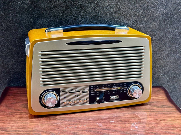 از جنس چوب و پلاستیک، سه موج AM,FM,SW، دارای ورودی درگاه USB، پشتیبانی از کارت حافظه TF Card، قابلیت اتصال به بلوتوث، باطری داخلی قابل شارژ