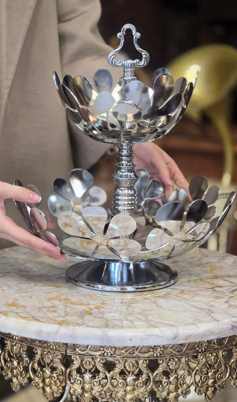میوه خوری دو طبقه سیلور _ شکلات خوری _ شیرینی خوری _ میوه خوری