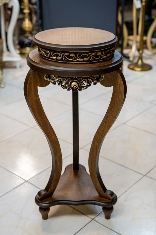 میز تلفن گرد چوبی _ میز تلفن _ میز تلفن قهوه ای