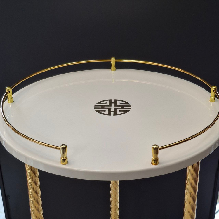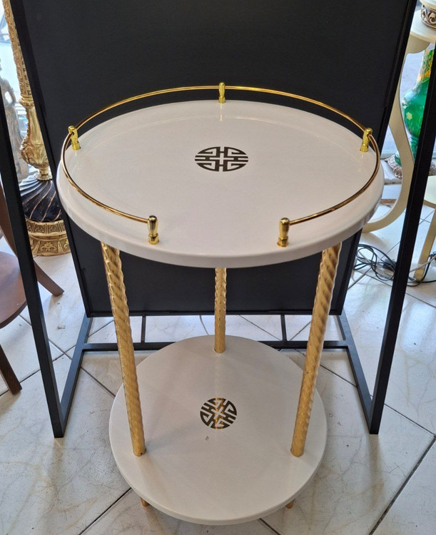 میز آباژور پولیشی گرد دو طبقه رنگ سفید