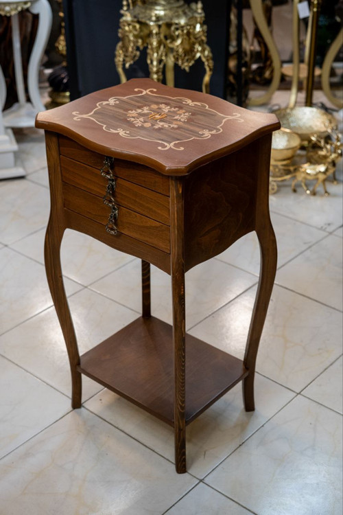 میز تلفن سه کشو معرق مستطیلی رنگ قهوه ای