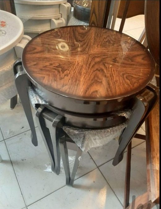 میز عسلی سه تکه چوبی پولیشی قهوه ای